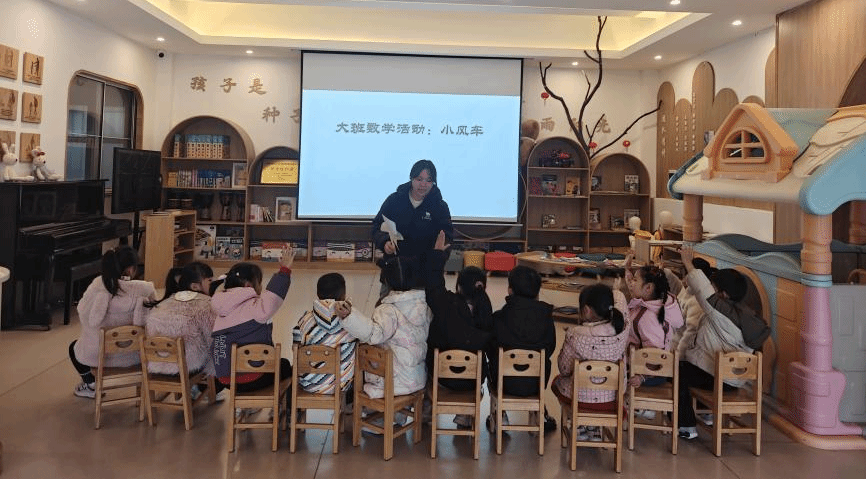 在园方负责人的陪同下,我院教师参观了园所环境,了解了其办学特色与教育理念。随后,她们深入课堂,观摩了由我校学生执教的两节集体教学活动。两位学生共同为大班幼儿带来了数学活动“小风车”,巧妙地将数学概念与手工制作相结合,引导幼儿在旋转风车的乐趣中感知图形的变化与数量的关系,课堂生动有趣,体现了“玩中学”的理念。另外一位学生则为中班幼儿开展了综合认知活动,通过“小动物与伞”的颜色匹配游戏、听音乐识别数量等多种形式,充分调动幼儿的听觉与表现力,充分展现了活动的感染力与教育价值。两节集体教学活动准备充分、设计新颖,获得了现场观摩的园方领导与指导教师的一致好评。