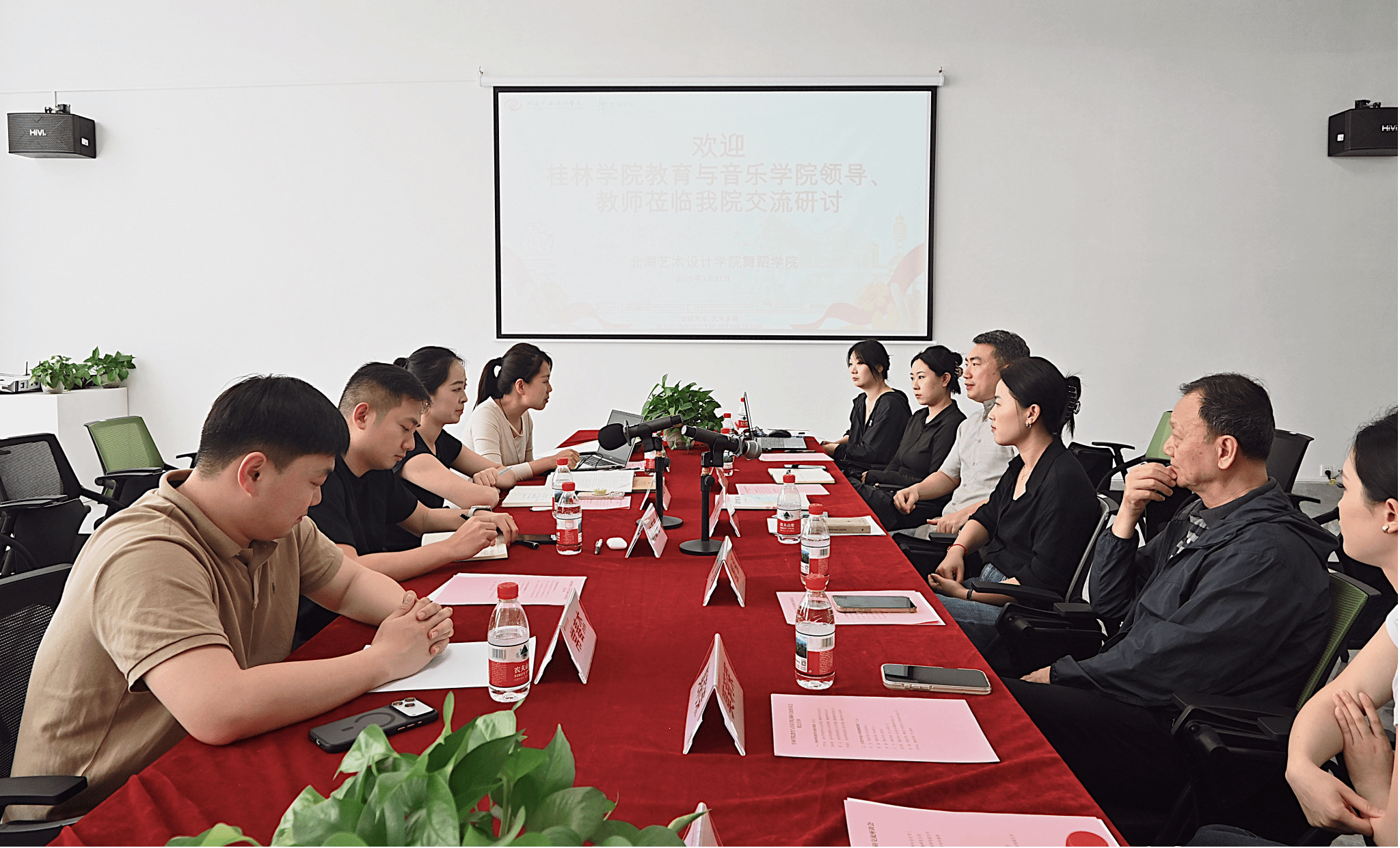双方围绕本科教学合格评估与舞蹈专业建设深入交流。上午,调研团与北海艺术设计学院舞蹈学院团队会面,了解其办学定位、发展历程与特色。随后,对方就专业建设成果与评估经验做专题汇报,分享迎检规划、材料梳理等实践经验。双方在座谈中重点研讨了评估要点、人才培养、课程改革、艺术实践、师资建设及质量保障等议题,并就评估难点与专业创新路径充分交流,有效启发了工作思路。