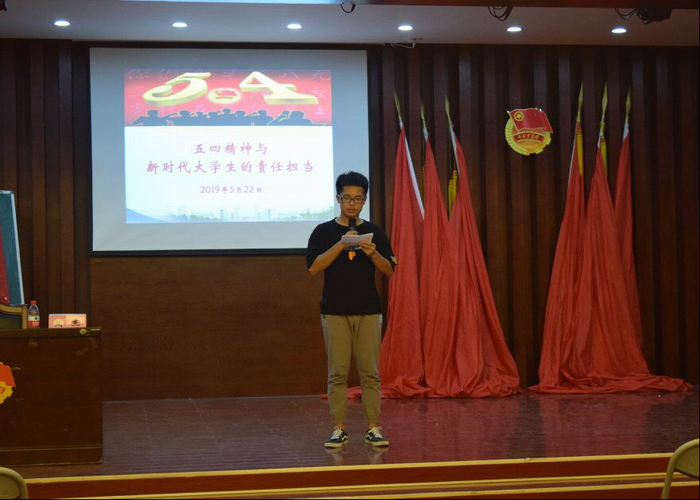讲座完毕以后,同学们踊跃发表感想。黄杜明同学说:“100年后的今天,作为一名新时代的青年,我们要有家国情怀,人类关怀不断的锤炼过硬的本领,积极拥抱新时代,奋进新时代;覃雪兰同学说“处于青年时代们我们应积极传承和弘扬五四精神。要树立理想,努力投身于社会实践当中在学种要积极进取,勤于学习;李丽媛同学说:“作为大学生的我们要承担起社会责任,珍惜时间,把学习作为终身的事情,为建设中国特色社会主义贡献自己的一份力。”;徐仁莹同学说:“在学校里,我们应该努力学习,争取掌握更多的科学文化知识,成为社会的有用人才,就像有的学生自愿去服务西部一样,去祖国和人民最需要你的地方。” 学生会主席苗灏宇也做了表态发言。