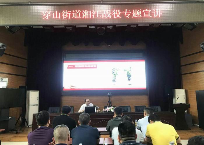 今年是湘江战役胜利85周年,本次讲座的主题是“浴血湘江,突破重围”。主要讲述了湘江战役的背景,大致经过和历史意义,一直讲到遵义会议的伟大转折。讲座开始,周杰老师以“断肠明志”的故事开头,介绍了红军红军第34师长陈树湘自己断肠牺牲也不做俘虏的悲壮事迹。然后从第五次反围剿失败说起,介绍了由于中央苏区在“左倾”教条主义的思想指导下,节节失利,难以立足,被迫进行战略转移,在突破敌人的第四道封锁线时,受到国民党的重兵围堵,也就打响了湘江战役;简单介绍了湘江战役的主要战场即湘江西岸的觉山铺狙击战、光华铺狙击战以及湘江以东的新圩狙击战,直到1934年12月1日,红军中央机关才全部渡过湘江。湘江战役粉碎了蒋介石要把中央红军歼灭在湘江以东的图谋,保存了革命实力。在随后的遵义会议上,纠正了“左”的错误,确立了毛泽东的领导地位,中国共产党从幼年走向成熟,中国革命走上了正确的轨道。