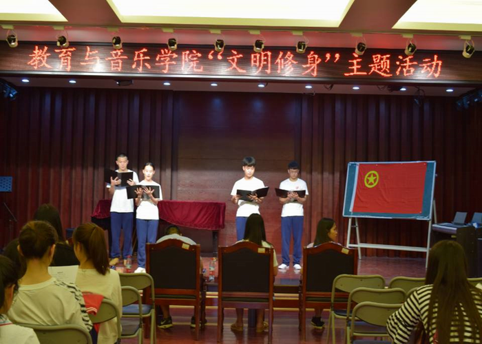 6月3日晚教育与音乐学院团总支学生会以“文明修身”为主题在广西师范大学漓江学院教育与音乐学院二楼的音乐厅成功举办了诚信演讲活动比赛,本次活动由团学王邓老师支持开展和团总支学生会全体成员共同参与。