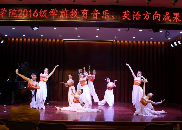 本次2016级学前教育音乐、英语方向汇报演出共有13个节目,展演的节目包括学生们学习的民族舞、形体、钢琴、声乐、器乐以及英语绘本剧和儿童英文歌曲等。