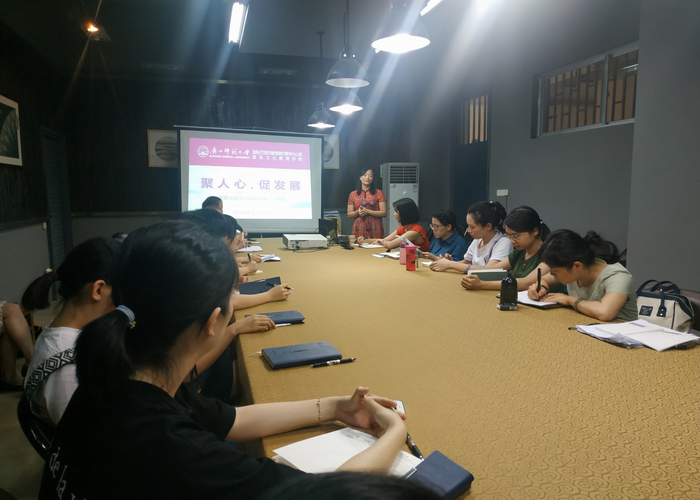 6月19日,教育与音乐学院党总支邀请到广西师范大学国际文化教育学院党委书记刘月娥老师为全体教职工做了一场以“聚人心,促发展”为主题、以课程思政为基本内容的专题讲座。教育与音乐学院全体教职工参加了党课。