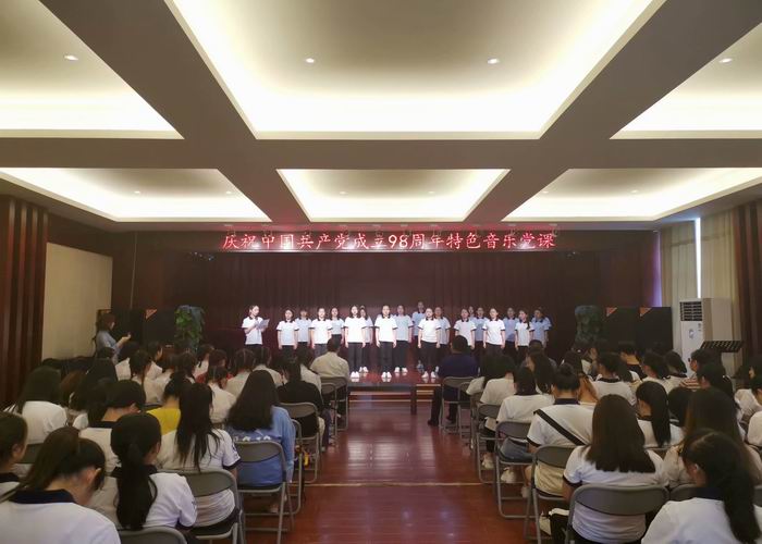 为了庆祝建党98周年、庆祝中华人民共和国成立70周年,丰富毕业生党员离校前的组织生活,教育与音乐学院党总支利用六月份的党日活动,举办了一场别开生面的不一样的党课。党总支书记周杰、副书记熊云云及部分师生党员出席,漓江学院副校长刘文革到场指导。