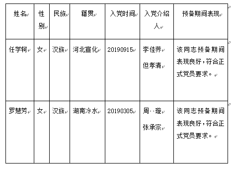 任学轲、罗慧芳等2位同志转为中共正式党员。根据发展党员工作有关要求,现将其有关情况公示如下: