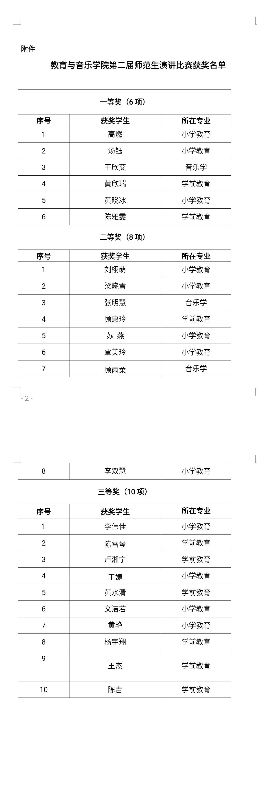 附件:教育与音乐学院第二届师范生演讲比赛获奖名单