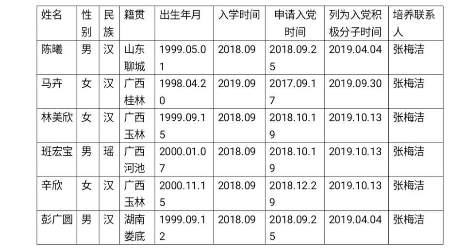 经支部大会研究同意,将陈曦等6位同志列为发展对象人选。根据发展党员工作有关要求,现将其有关情况公示如下: