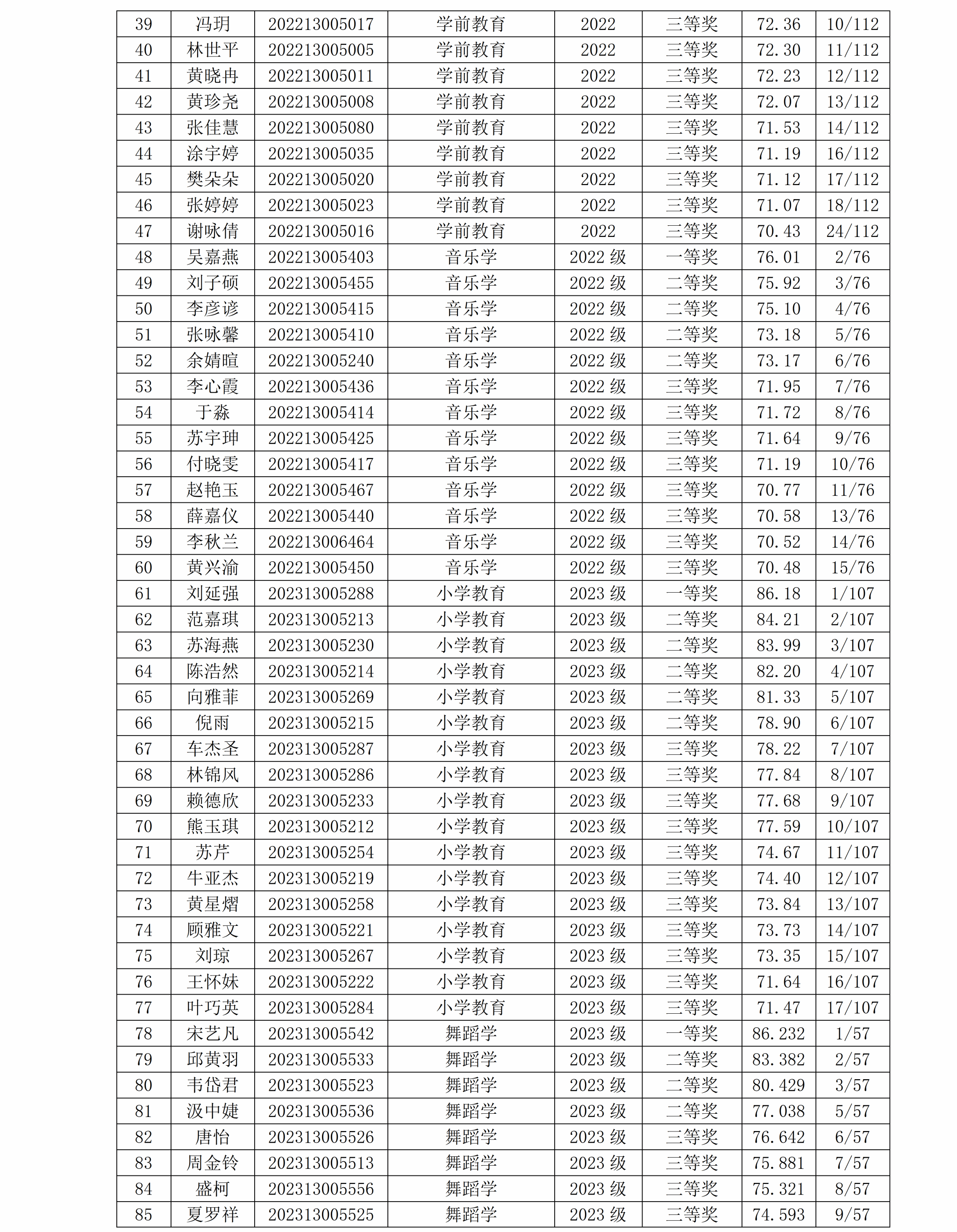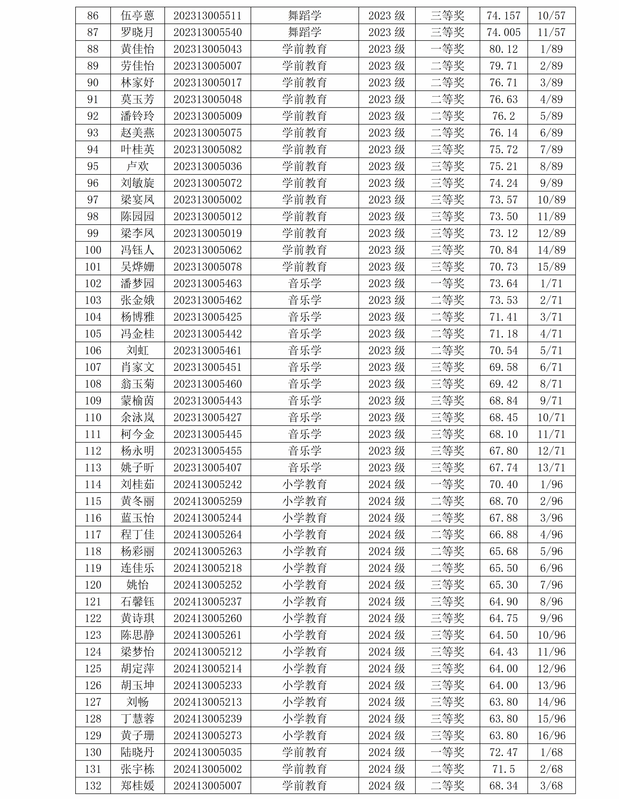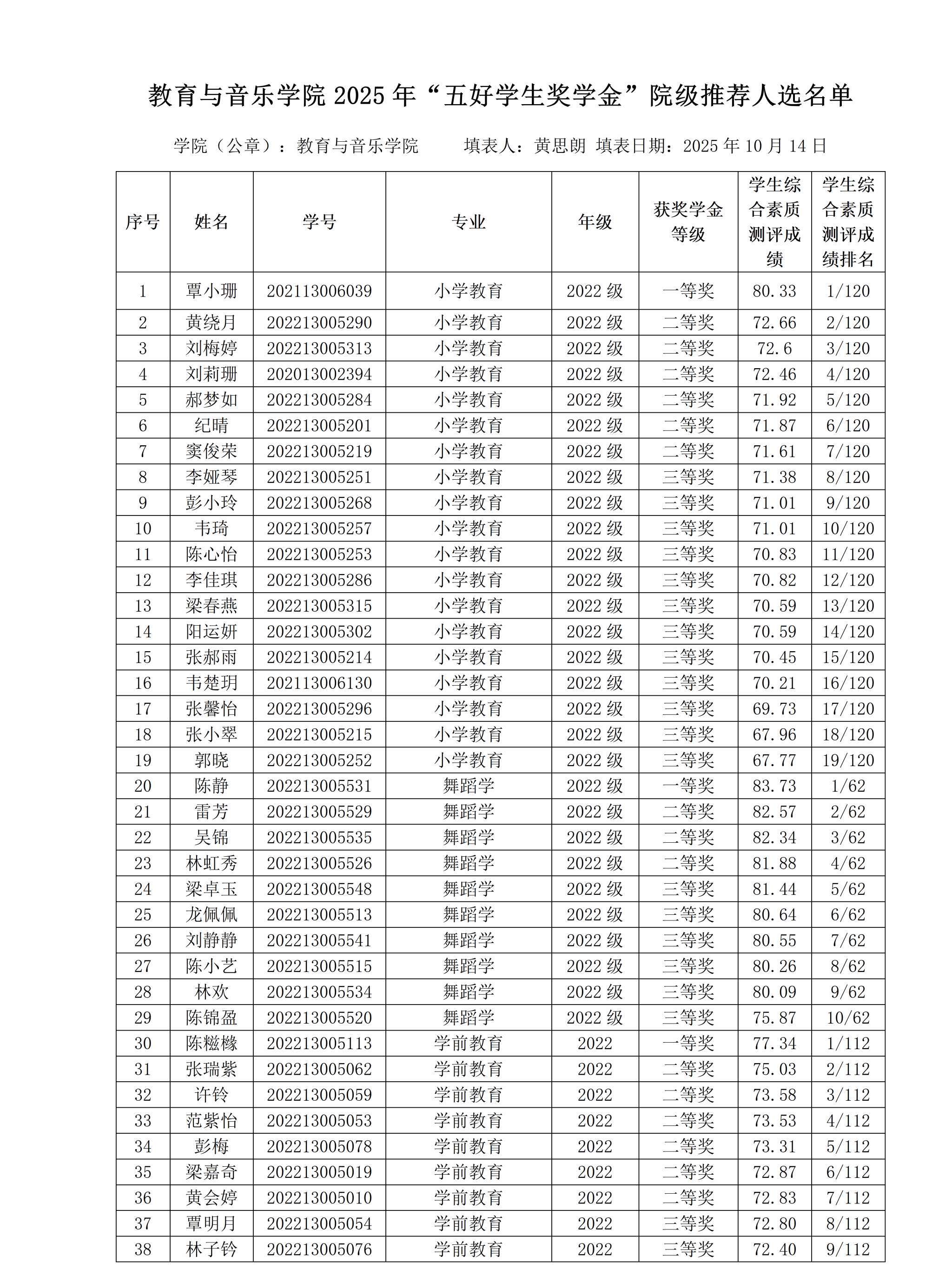 附件:教育与音乐学院2025年“五好学生奖学金”院级推荐人选名单