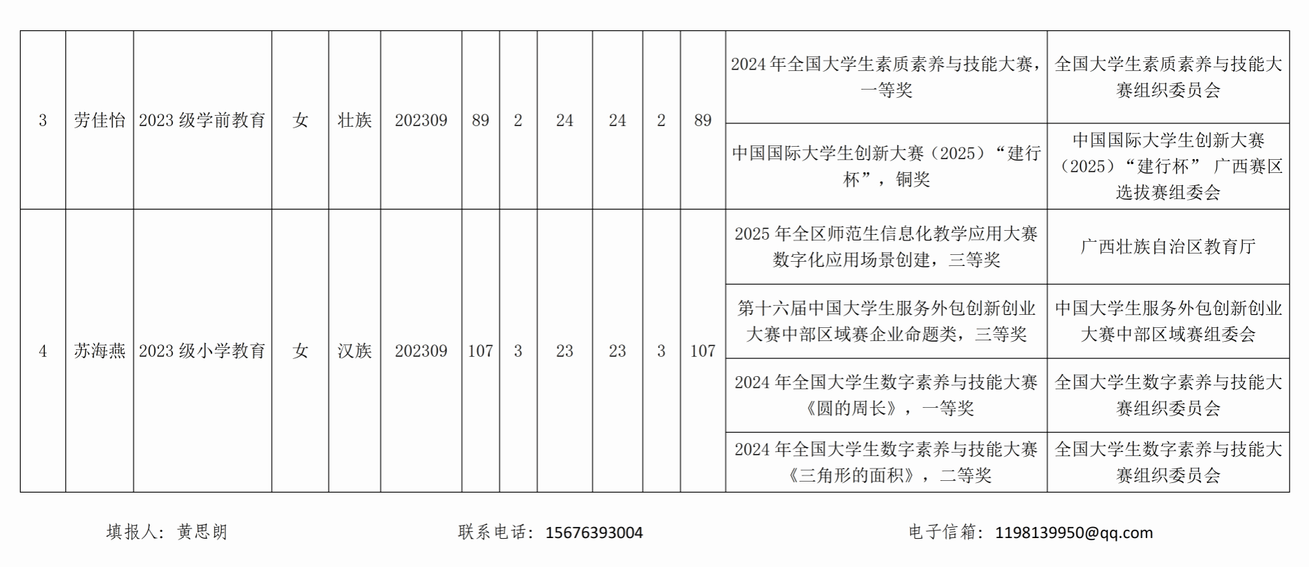 根据自治区文件要求,经个人申请,班级初评,院级审核,拟评出 劳佳怡 等4名同学为2025-2026学年自治区人民政府奖学金院级推荐人选,现予以公示,名单见附件。