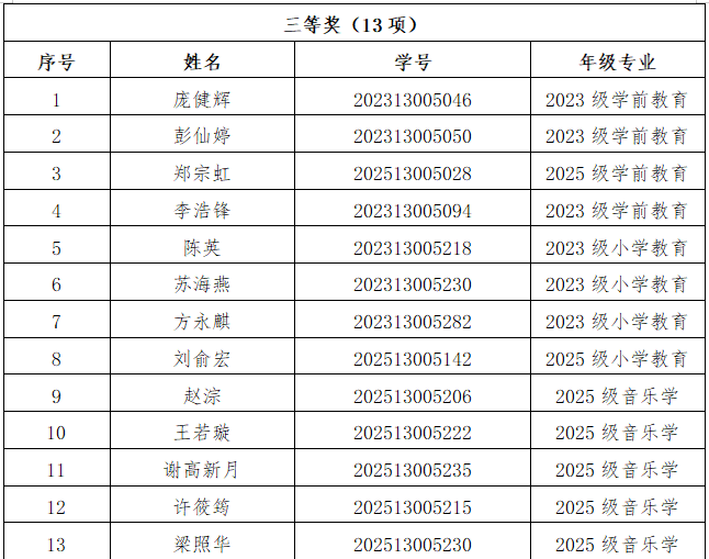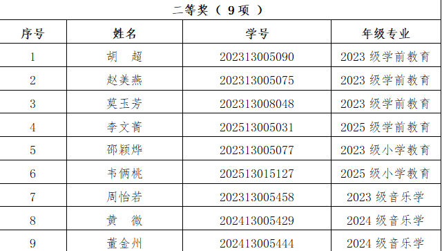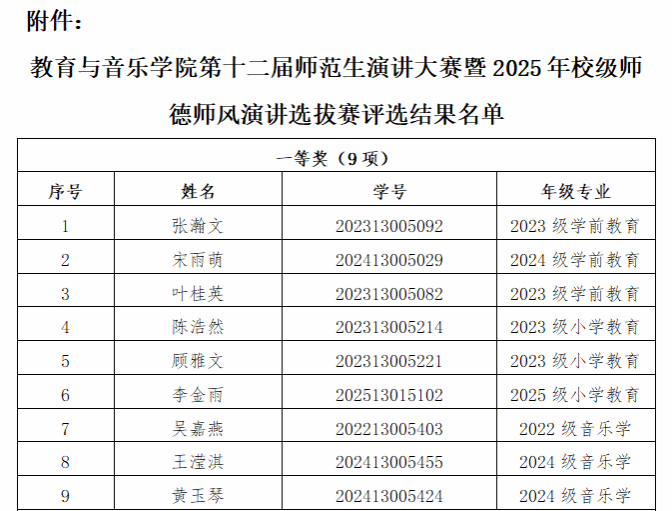 附件:教育与音乐学院第十二届师范生演讲大赛暨2025年校级师德师风演讲选拔赛评选结果名单