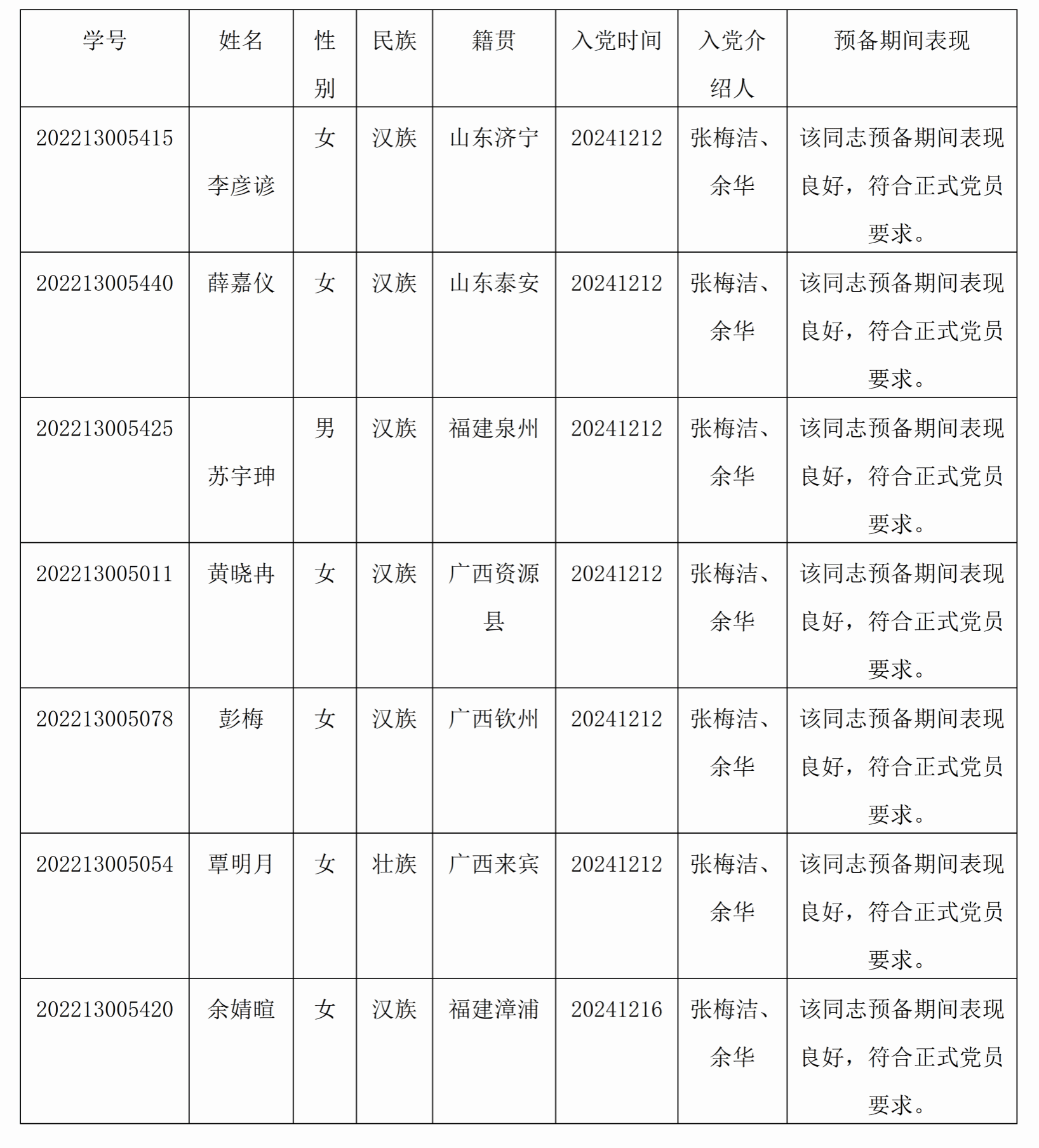 在征求党员、群众意见的基础上,经支部委员会审查,拟将李彦谚等7位同志转为中共正式党员。根据发展党员工作有关要求,现将其有关情况公示如下: