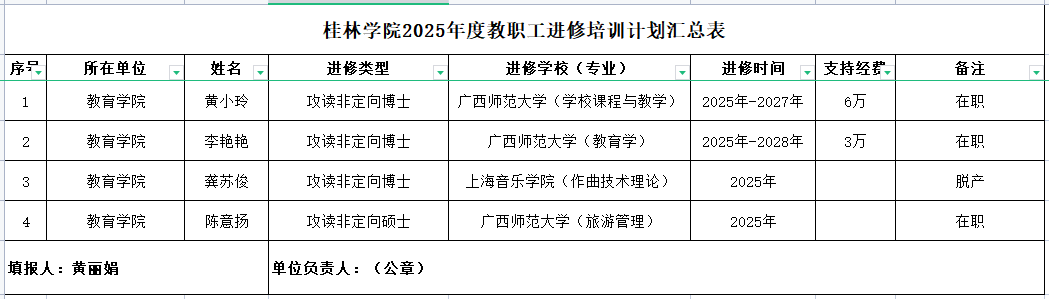 关于教育学院2025年度教职工进修培训计划推荐的公示