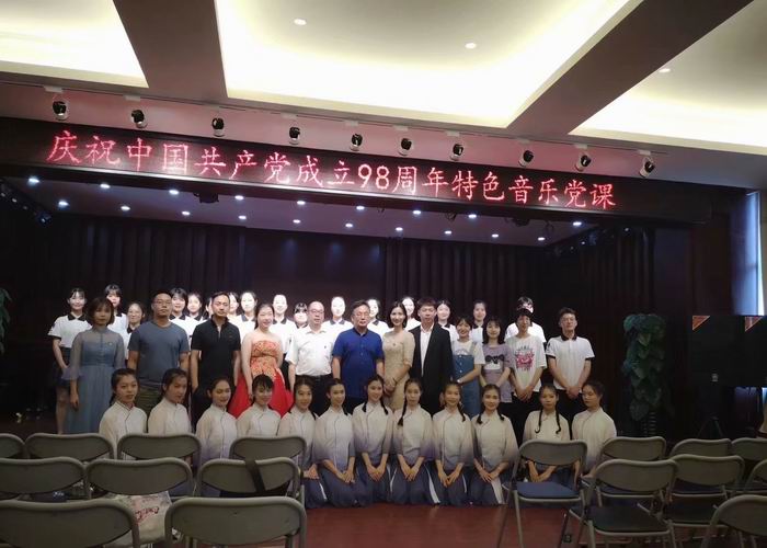 为了庆祝建党98周年、庆祝中华人民共和国成立70周年,丰富毕业生党员离校前的组织生活,教育与音乐学院党总支利用六月份的党日活动,举办了一场别开生面的不一样的党课。党总支书记周杰、副书记熊云云及部分师生党员出席,漓江学院副校长刘文革到场指导。