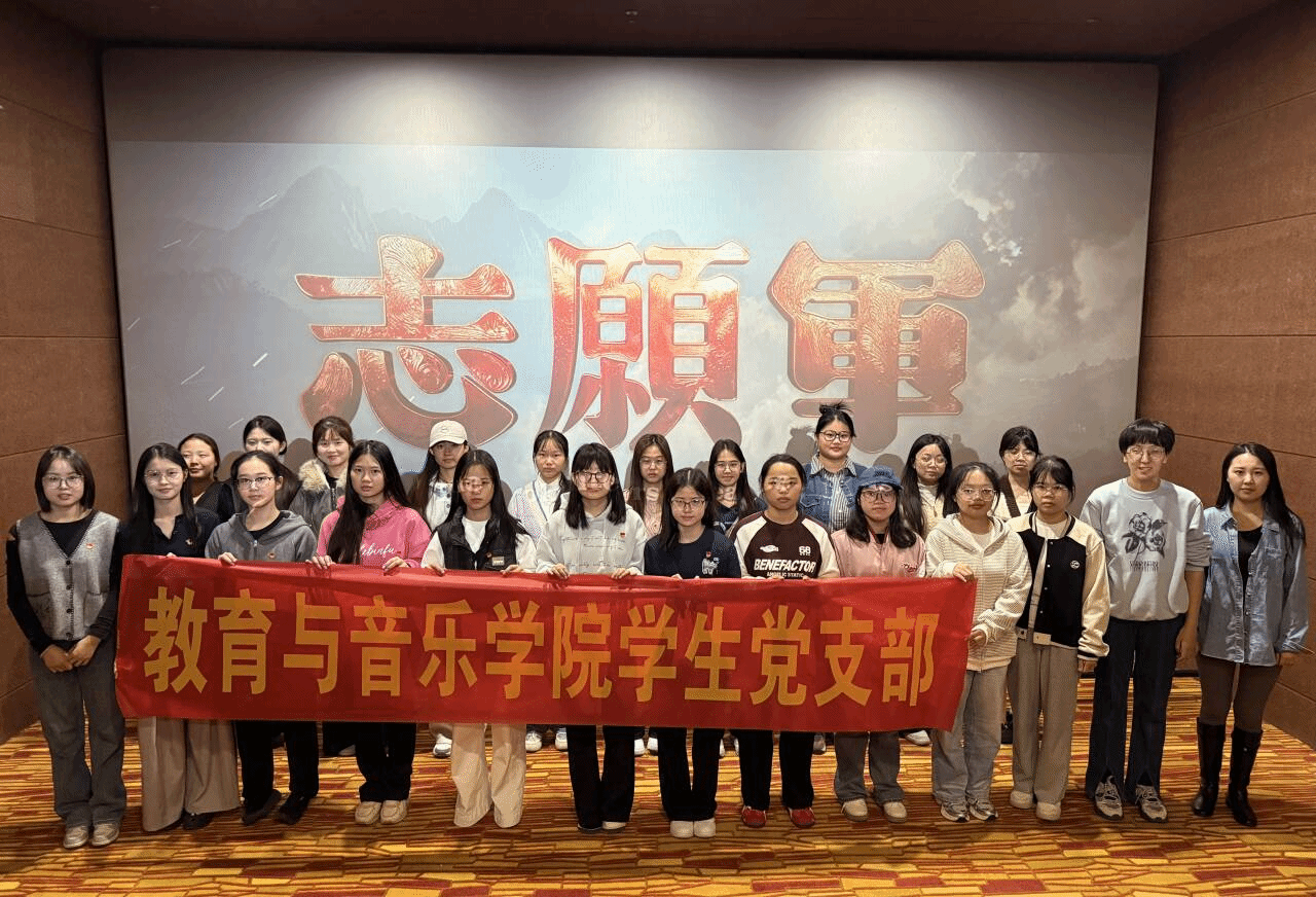 为进一步厚植爱国主义情怀、筑牢理想信念根基,2025年10月24日,教育与音乐学院学生党支部组织全体党员学生开展“红色光影映初心,砥砺奋进担使命”主题党日活动。通过集体观看爱国主义电影《志愿军:浴血和平》,引导党员学生在光影中重温革命先辈的浴血征程,汲取砥砺奋进的精神力量。