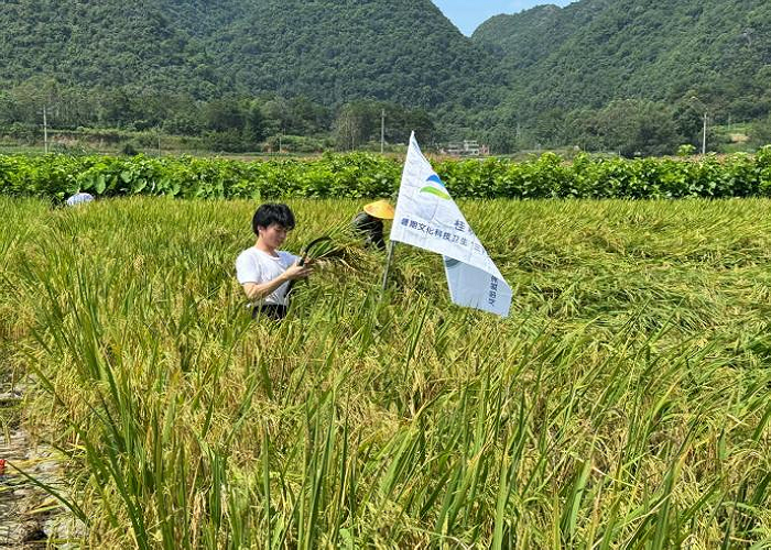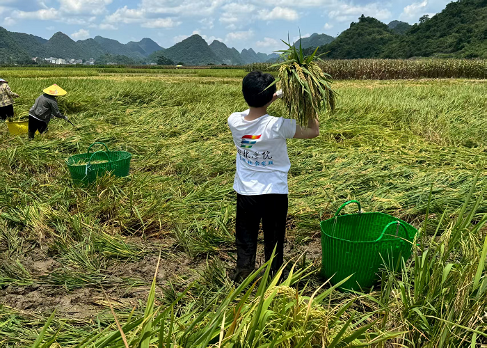 实践团队首站来到兴安县榕江镇的传统米粉制作工坊。在这里,团队成员亲自体验了桂林米粉从稻谷到银丝般米粉的神奇蜕变。收割稻谷、石磨碾米、舂浆揉团、漏粉成型,每一道工序都凝聚着匠人们的智慧与心血。工坊老师傅介绍道:“桂林米粉的制作讲究‘三熟’工艺,每一步都容不得半点马虎,只有这样做出来的米粉,才有那股子独特的韧劲和米香。”