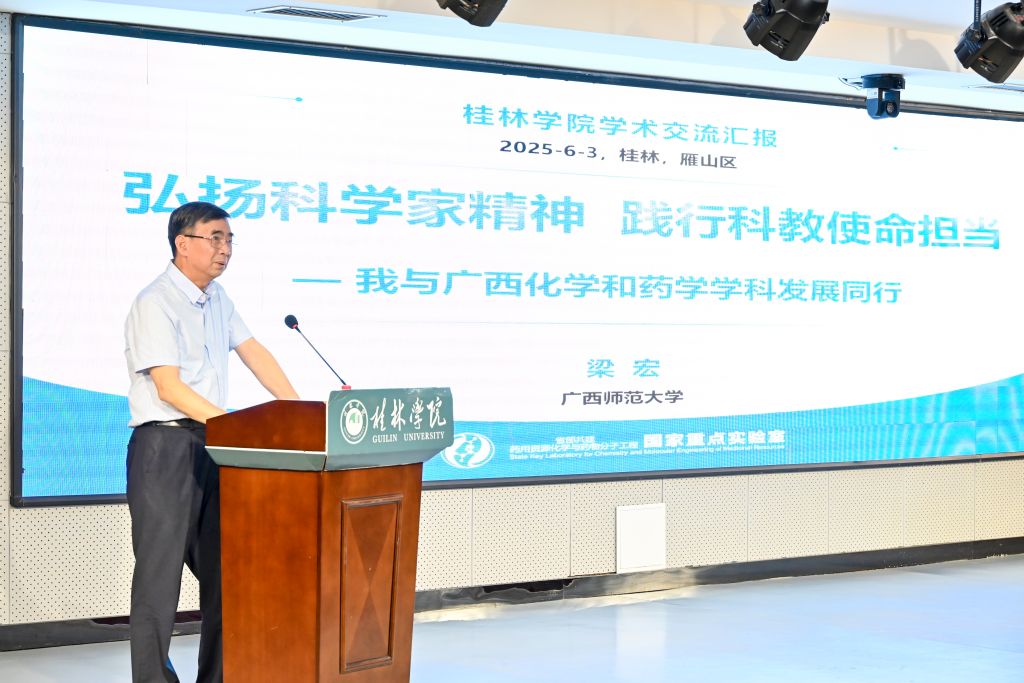 为大力弘扬胸怀祖国,服务人民的爱国精神,勇攀高峰、敢为人先的创新精神,追求真理、严谨治学的求实精神,淡泊名利、潜心研究的奉献精神,集智攻关、团结协作的协同精神,甘为人梯、奖掖后学的育人精神。6月3日,在桂林学院建校24周年之际,由自治区科学技术协会主办、桂林学院承办的“科创有我,桂在同行”广西科学家精神进校园专题讲座在我校隆重举行;广西师范大学省部共建药用资源化学与药物分子工程国家重点实验室主任,原广西师范大学校长、自治区科协副主席梁宏教授作题为“弘扬科学家精神,践行科教使命担当—我与广西化学和药学学科发展同行”的主题讲座。