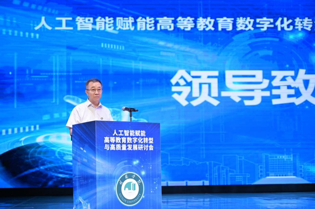 桂林学院校长吴郭泉在欢迎辞中表示,本次研讨会恰逢其时,意义深远。他提到,教育部发布的《中国智慧教育白皮书》为智能时代教育变革描绘了宏伟蓝图,桂林学院将积极响应国家战略,推动人工智能与教育教学深度融合。吴郭泉还特别感谢广西高等教育学会的信任与支持,并期待与会专家为学校发展建言献策。