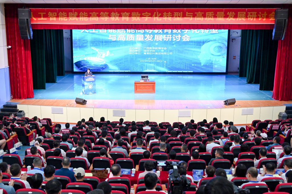 2025年6月28日,由广西高等教育学会主办、桂林学院承办、青果软件集团协办的“人工智能赋能高等教育数字化转型与高质量发展研讨会”在我校隆重召开。本次研讨会汇聚了全区20多位校级领导、60余所兄弟院校专家学者与教师代表,以及人工智能行业企业代表共约400人;共同探讨人工智能技术如何推动高等教育数字化转型与高质量发展。广西高等教育学会会长杨伟嘉教授、副会长王恩界教授,学校董事长陶毅、校长吴郭泉、党委书记唐文红等领导出席活动,副校长杨庆庆主持当日活动。