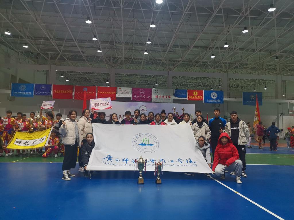 12月17日-18日,广西师范大学漓江学院舞龙舞狮代表队参加了第一届广西壮族自治区大学生舞龙舞狮锦标赛,比赛地点为广西师范大学雁山校区,该项赛事由广西学校体育卫生艺术学会主办,广西师范大学承办,本届舞龙舞狮锦标赛共有全区16所高校参赛。