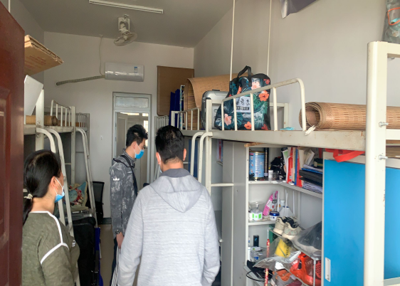 体育与健康学院全体学生工作队伍前往了广西师范大学雁山校区二期、四期、五期查看了学生宿舍的情况。辅导员们打开一间间的宿舍进行检查,并对存在问题的宿舍进行登记,续而更好的与广西师范大学后勤保障处沟通,并提醒学生返校前做好相应物资的准备。