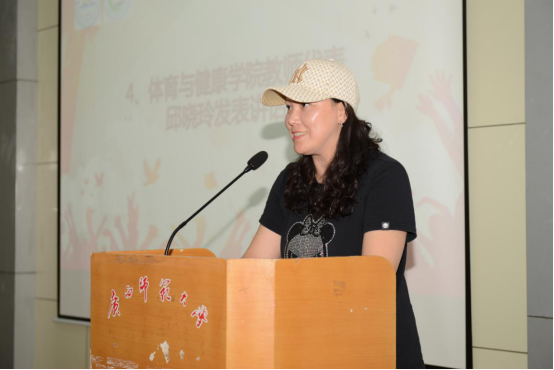 图:健康休闲教研室主任邱晓玲老师发表讲话