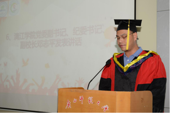 图:广西师范大学漓江学院校党委副书记、纪委书记、副校长邓志平发表讲话