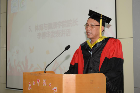 图:漓江学院体育与健康学院院长李善华发表讲话