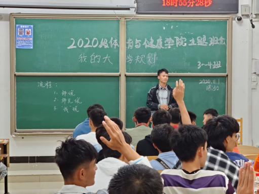 11月1日,体育与健康学院于广西师范大学厚藩楼开展2020级新生职业生涯规划主题班会,2020级体育学类全体辅导员、同学们共同参与了本次班会活动。