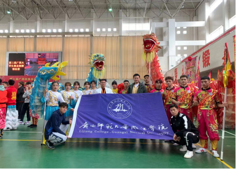 图:广西师范大学漓江学院舞龙舞狮代表队获奖合影