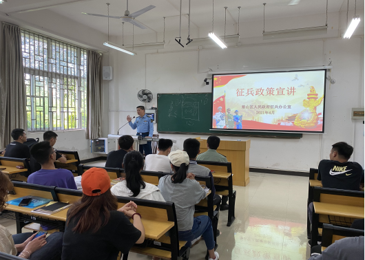 4月22日,体育与健康学院于广西师范大学体育楼102召开征兵宣传动员会,桂林市雁山区武装部部长王胜、漓江学院征兵工作领导小组成员王瑞、吕茜、体育与健康学院全体2021届毕业班在校生和各年级有入伍意向的学生共同参加了本次会议。