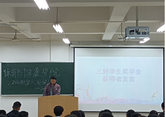 随后,2020级三好学生奖学金获得者杨意与新生们分享自身学习和生活的经验。他用自身的经历勉励大家,大学生不能“躺平”,要激起奋斗的精神,才在大学毕业时不留下遗憾,进而收获更好的自己。