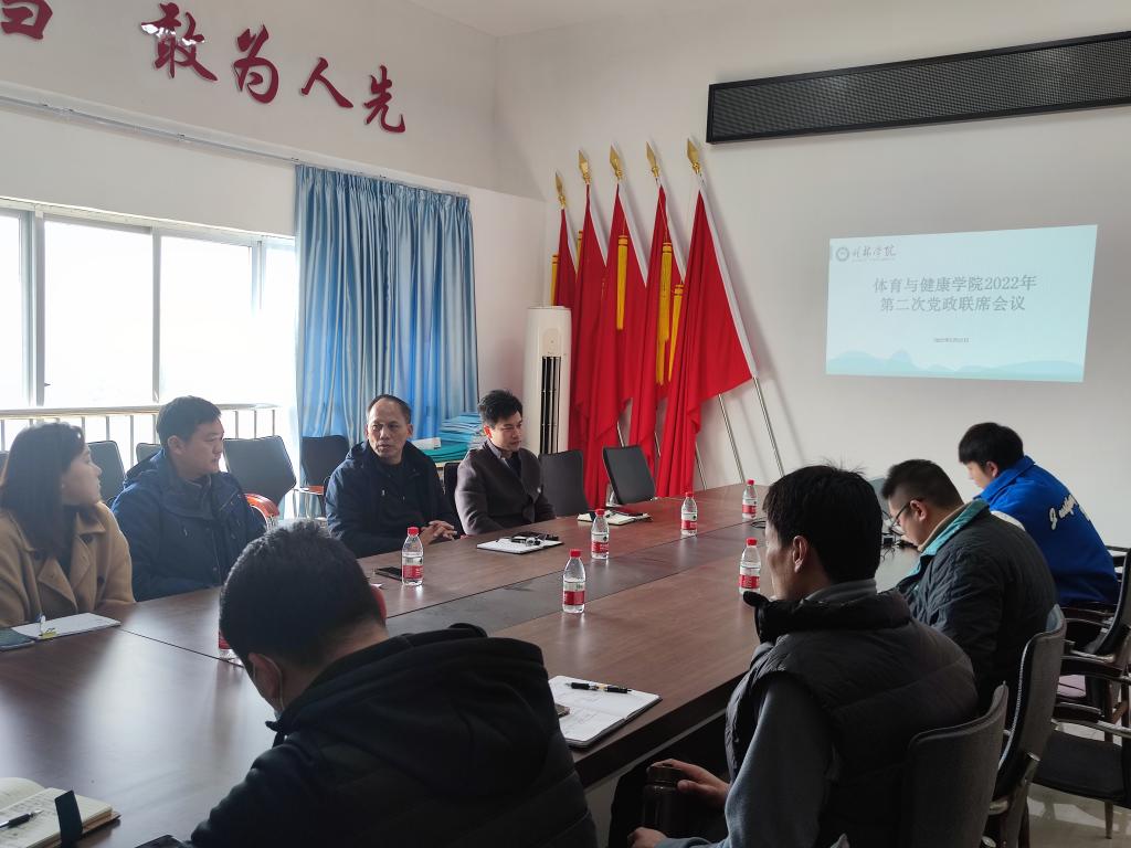 2月27日,体育与健康学院于彰善楼3楼召开2022年第二次党政联席会议,学院邻导班子、各教研室主任、党支部书记共同参加了本次会议,会议主要围绕学院2022年工作要点进行讨论