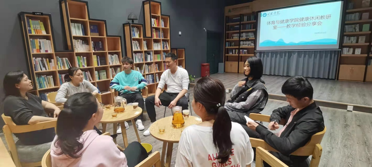 3月16日下午,健康休闲教研室在独秀书房召开教学经验分享会,会议由教研室主任邱晓玲主持,体育与健康学院副院长涂海宁及健康休闲教研室全体成员参会。