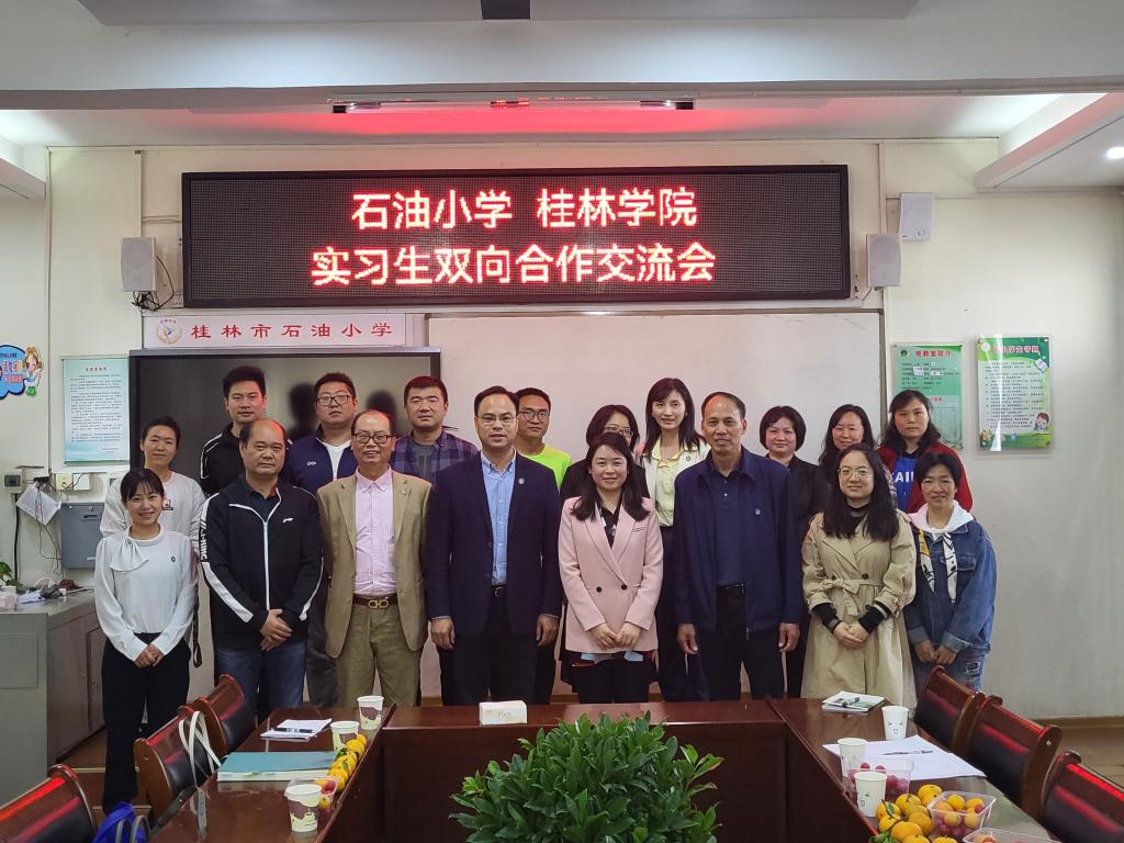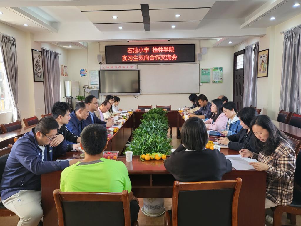 届时,桂林市石油小学校长谢颖华等学校主要负责人热情接待了我方来访人员。在交流会上,邓志平副校长表示,桂林市石油小学每年接纳我校来自体育教育、小学教育等专业的实习学生,对帮助我校实习生提升教育管理水平表示感谢。同时,石油小学对于体育、美育的重视程度也是双方合作的良好基础。