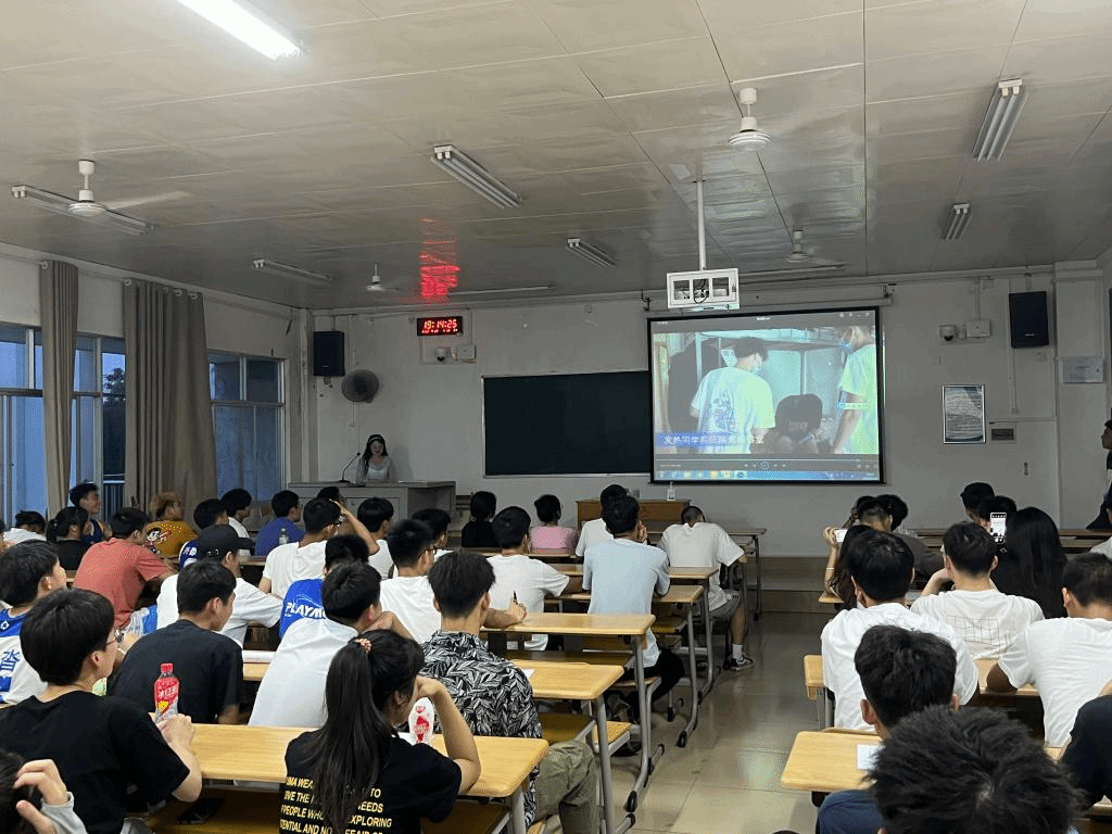 图:组织学生观看自制“校园疫情防控应急演练”视频