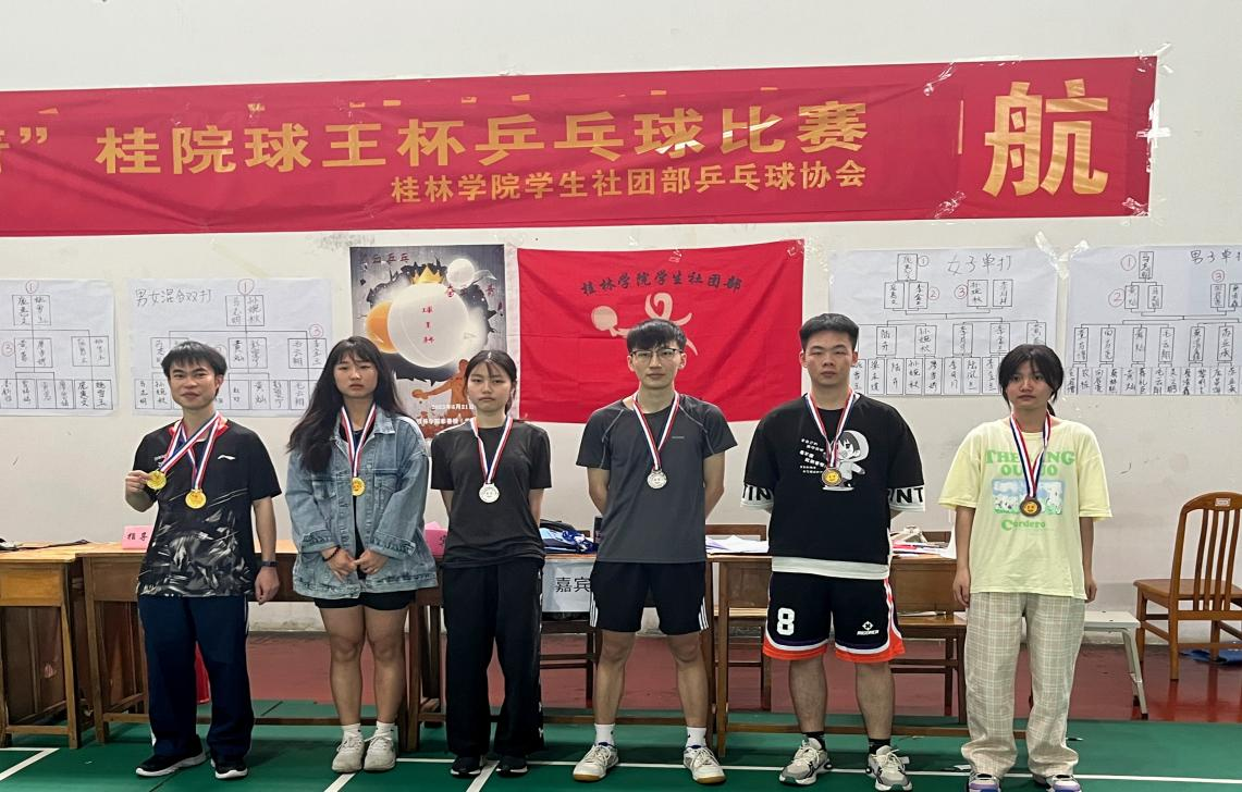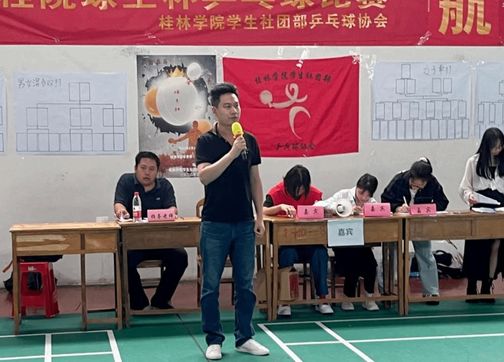 5月21日,我校学生社团部乒乓球协会在彰善楼室内球场举办了桂院“球王杯”乒乓球比赛,乒乓球协会指导老师郭时骏、钟振中,社团事务部、数学建模协会、三离影社学生代表和各学院参赛选手共同参与了本次活动。