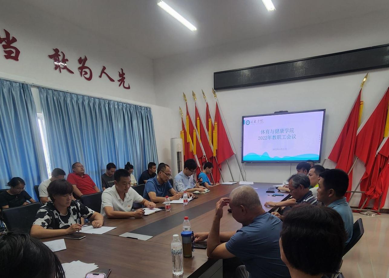 9月22日上午,体育与健康学院于彰善楼4楼召开全体教职工会议,学院全体教职工出席本次会议,会议由体育与健康学院院长李善华主持。