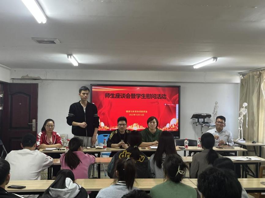 10月12日下午,健康与体育休闲教研室在彰善楼三楼会议室召开体育学类家庭经济困难学生师生座谈会。体育与健康学院党总支副书记郭时骏,健康与体育休闲教研室主任邱晓玲、副主任廖维仁、教研室教师代表以及体育学类家庭经济困难学生参加了本次座谈会,座谈会由宋龙主持。