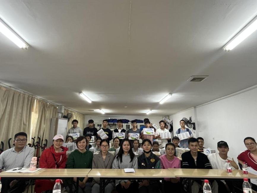图:健康与体育休闲教研室老师为学生发放慰问品