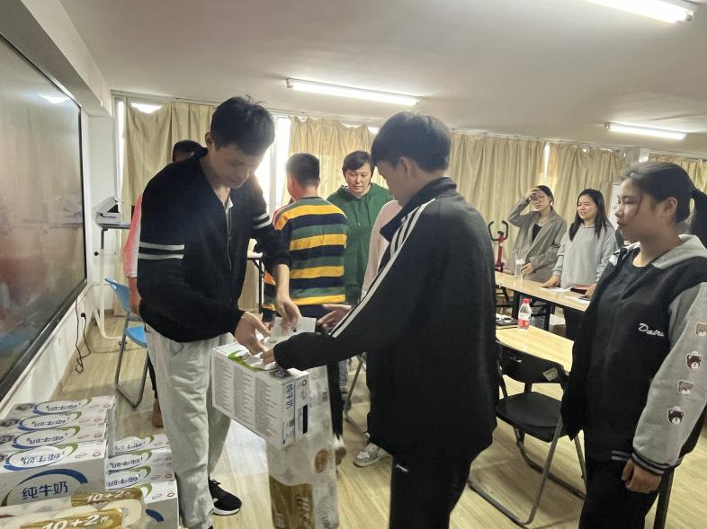 座谈会后,教师们向家庭经济困难学生捐赠了牛奶与卷纸等慰问品,让困难大学生切身感受到老师们的关心关爱。会上,邱晓玲老师也鼓励大学生克服困难,努力学习,提升综合素质,加强实践锻炼,以后做一个对社会有用的人。