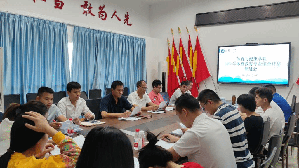 12月26日下午,体育与健康学院在彰善楼四楼召开体育教育专业综合评估推进会。体育与健康学院李善华院长、涂海宁副院长、副书记郭时骏以及参加评估工作的教师均参加了本次会议,会议由涂海宁副院长主持。