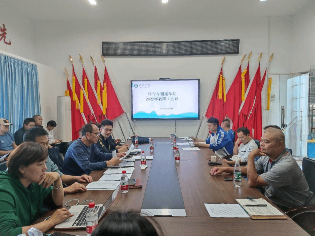 10月12日下午,体育与健康学院于彰善楼4楼召开全体教职工会议,学院全体教职工出席本次会议,会议由体育与健康学院院长李善华主持。