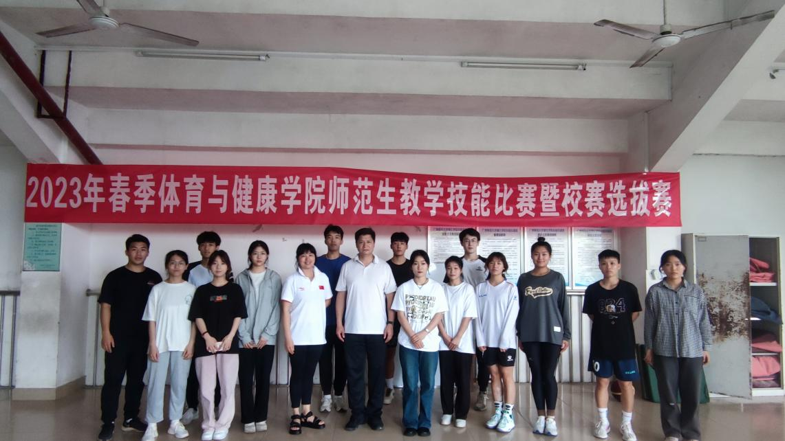 4月19日,体育与健康学院2023年春季师范生教学技能比赛暨校赛选拔赛于彰善楼2楼健美操教室举办,学院各年级师范生参加了本次比赛,比赛的负责教师为潘春丽.