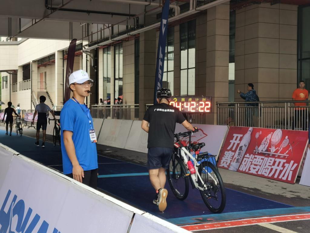 10月28日,50名赛前志愿者前往阳朔县阳朔中学协助组委会做好赛前准备工作;10月29日,279名赛事志愿者在骑行赛道、T2换项区、跑步赛道、终点四个点位为参赛运动员提供全方位、全天候、全过程的服务与支持。活动期间,赛前志愿者为运动员提供赛事咨询、运动员资料审核、参赛物资发放等服务;赛事志愿者协助裁判和医护人员做好赛道分流、降速提醒、医疗观察、帮助运动员拉伸放松等工作。
