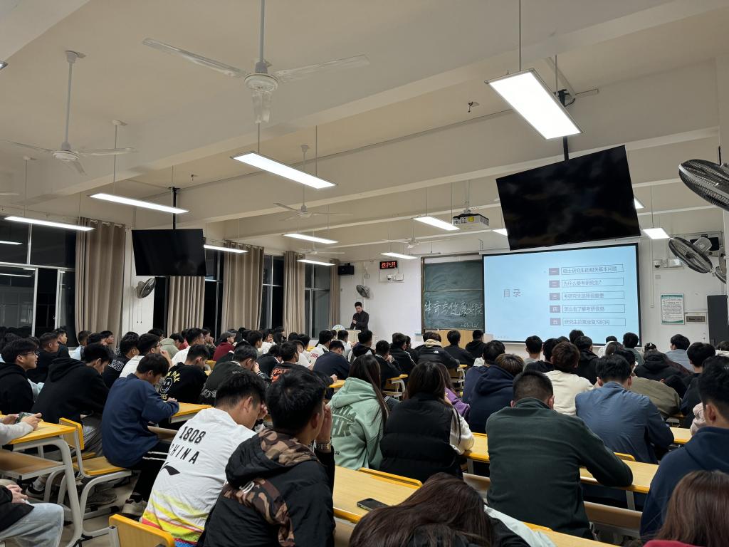 首先,学院党总支书记郭时骏为同学们介绍了考研的政策和研究生招生的情况,对考研的现状进行了分析。郭时骏老师还根据自己的经验,对同学们进行动员,建议同学们以积极良好的心态去面对考研,提前制定好备考计划深入研究考研技巧,早谋划、早打算、早准备,提高了同学的自信心。随后,来自广西师范大学的优秀研究生周倩倩、张倩梅从自身的角度出发分享了考研的心得和体会,对同学们在考研前需要注意的问题进行了详细说明。