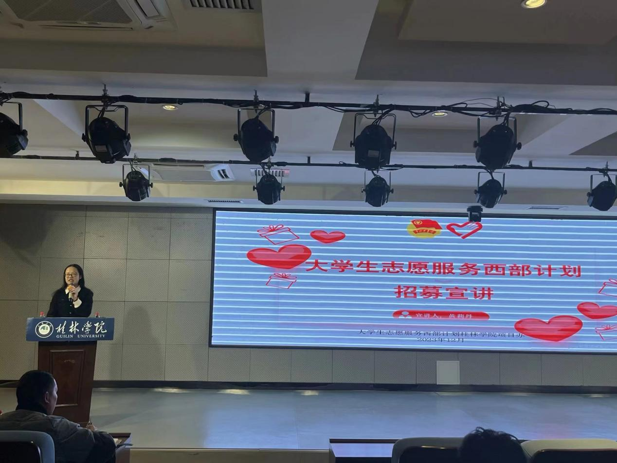 12月19日下午,体育与健康学院于至善讲堂开展了“大学生志愿服务西部计划”政策宣讲会,本次宣讲会由桂林学院校团委副书记黄莉丹老师主讲,学院全体2024届返校毕业生参加了本次会议。