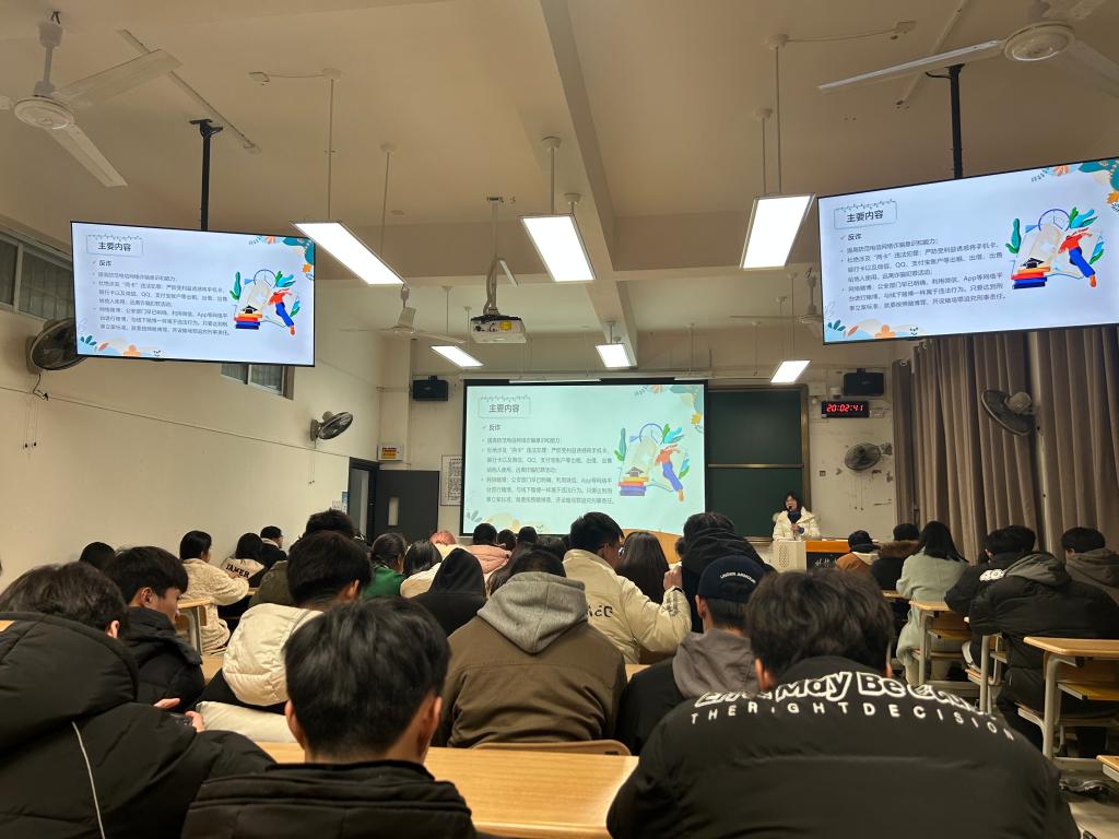 主题班会上,辅导员首先就学生返校情况进行了详细统计。随后,重点强调了防范电信诈骗、春季传染病预防、人身财产安全、交通安全、卫生健康安全等内容,特别提醒同学们警惕新型网络诈骗以及网络赌博等,切实提高安全防范意识。最后,各班分别就本学期就业工作、补考安排等内容进行了提醒。