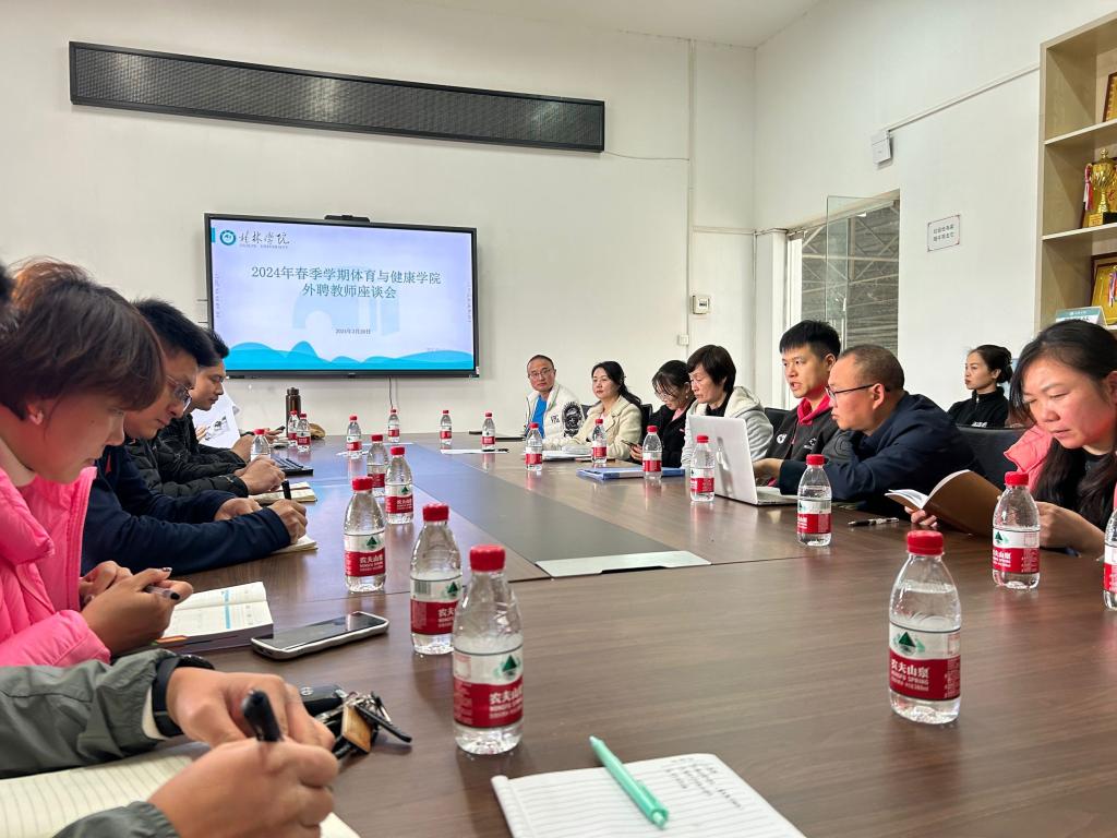 3月20日,体育与健康学院于彰善楼4楼会议室召开2024年春季学期外聘教师专题工作会议,学院领导班子、各教研室主任、副主任及外聘教师代表参加了本次会议,会议由涂海宁副院长主持。