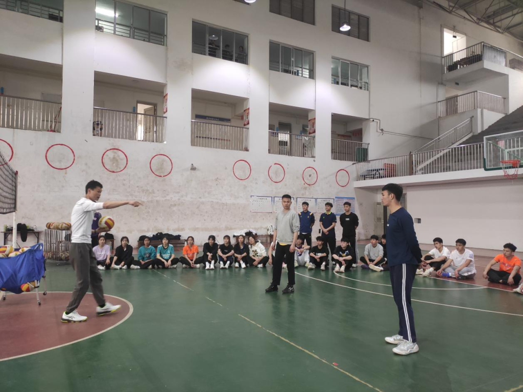 在章新安老师的篮球课程中,通过对教学内容的有机结合,组织同学们进行运球、传球及投篮的综合技术训练,提升了授课效果。李毅老师的排球课程中组织学生学习前交叉扣球、后交叉扣球2项扣球战术。