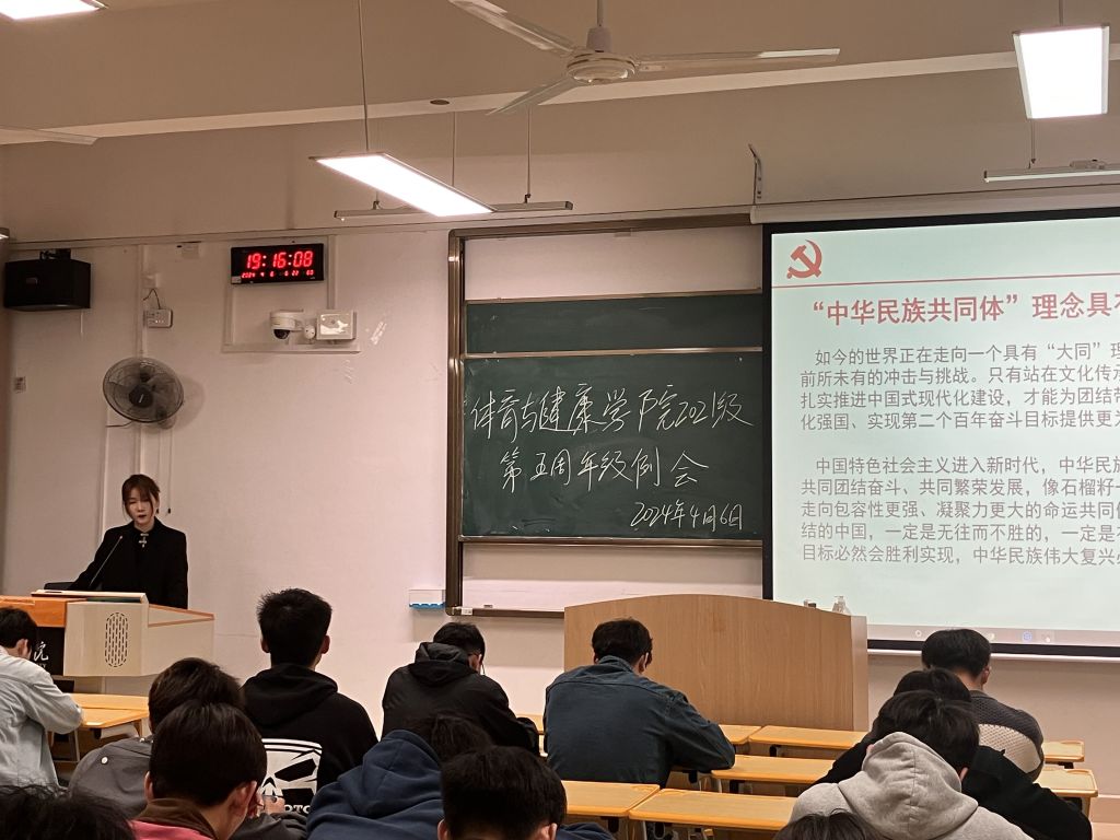 4月6日晚,体育与健康学院2021级在至善楼1504教室举行了“铸牢中华民族共同体意识”的主题年级例会。例会由辅导员唐雪雁老师主持,2021级体育与健康学院全体成员参加了本次例会。